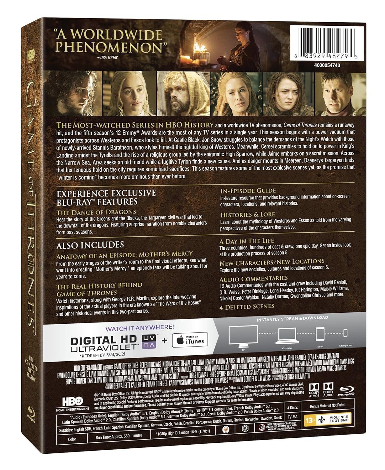 Game of Thrones: The Complete Fifth Season (Blu-ray+Digital HD)]]>