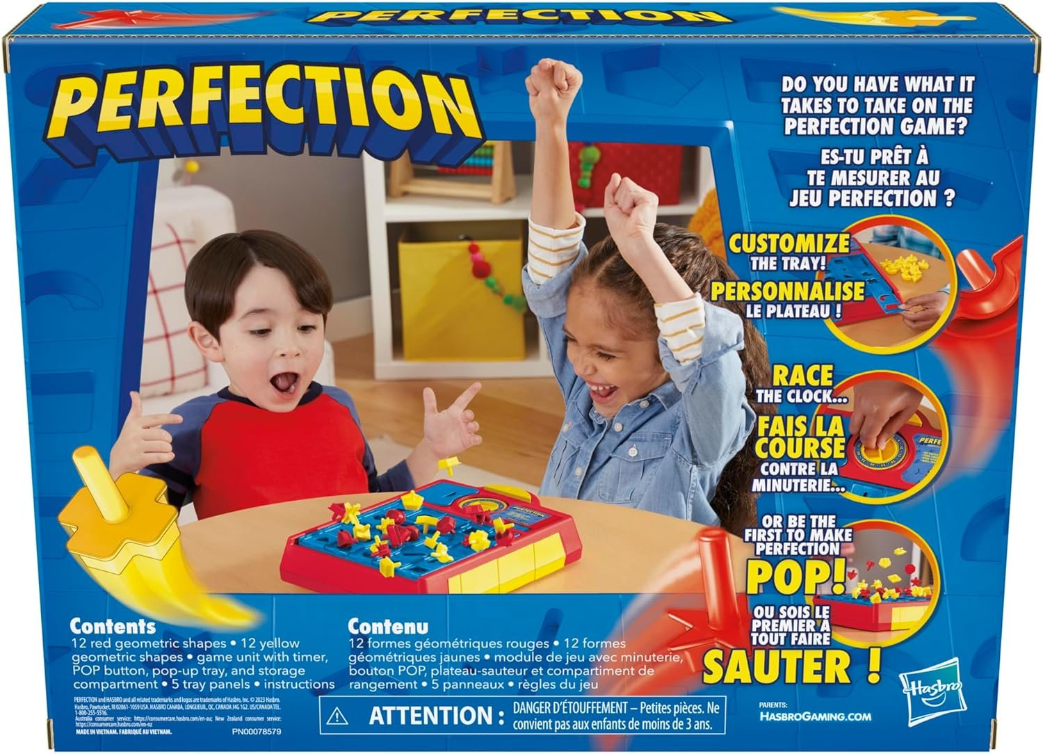 A FAVORITE GAME FOR KIDS: Looking for classic kids games? Loved by generations, the Perfection game is an easy to play game that has players racing to fit all the shapes into the tray before they pop