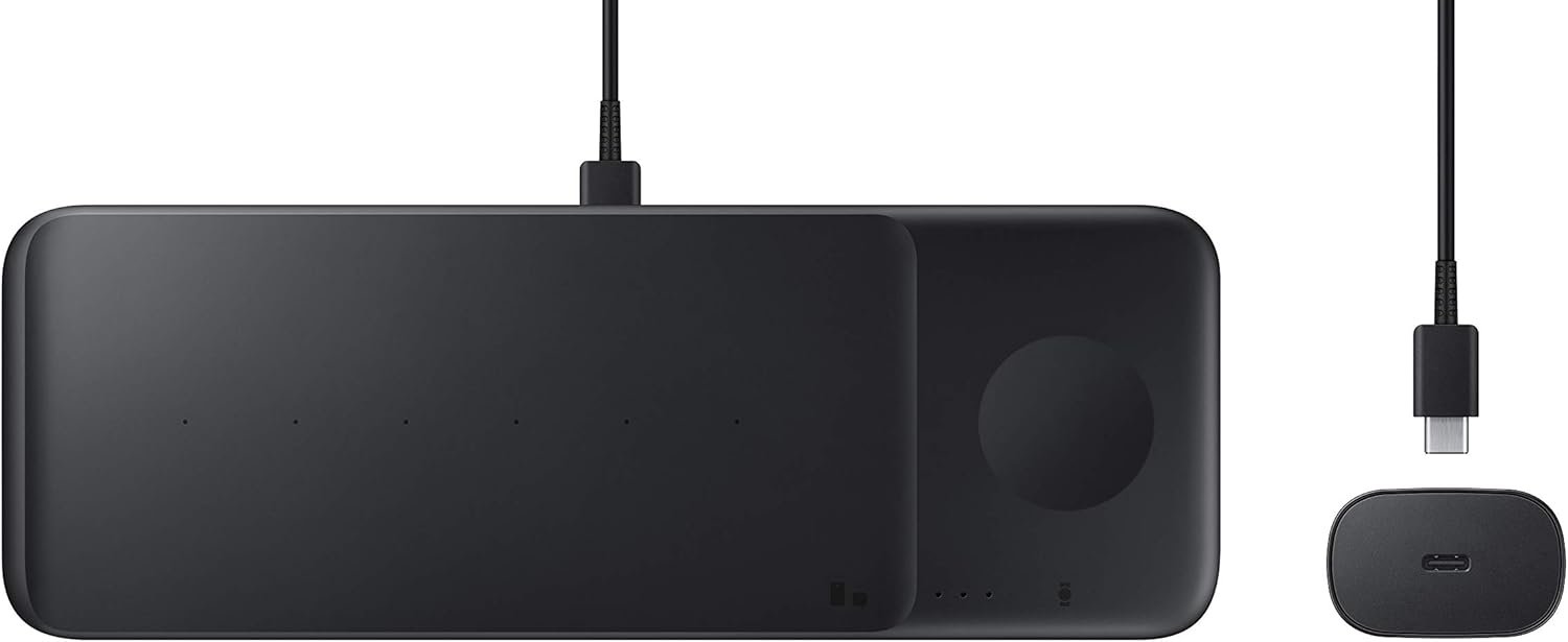 Samsung Electronics Wireless Charger Trio, Qi Compatible – Charge up to 3 Devices at Once – for Galaxy Phones, Buds, Watches, and Apple iPhone Devices, Black (US Version)